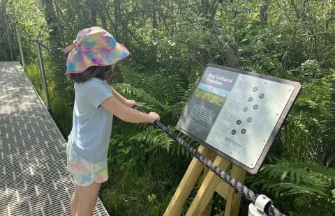 A young visitor learns about the importance of bog habitats and the history of land-use at New London’s Philbrick-Cricenti Bog.